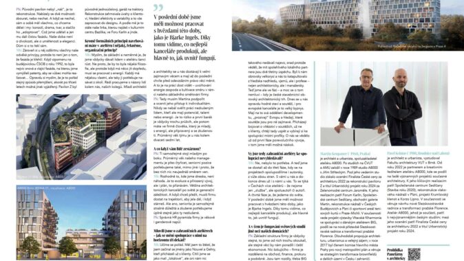 Číslo doplňuje nová rubrika, Návštěva ateliéru. Tentokrát jsme navštívili A8000 a nahlédli do způsobu práce jednoho z výrazných českých architektonických studií. V tomto vydání Stavby spojuje příspěvky jedna vlastnost: vědomí vlastní role. Architektura není pouze kulisou městského života – stává se aktivním nástrojem, který jej spoluutváří.
