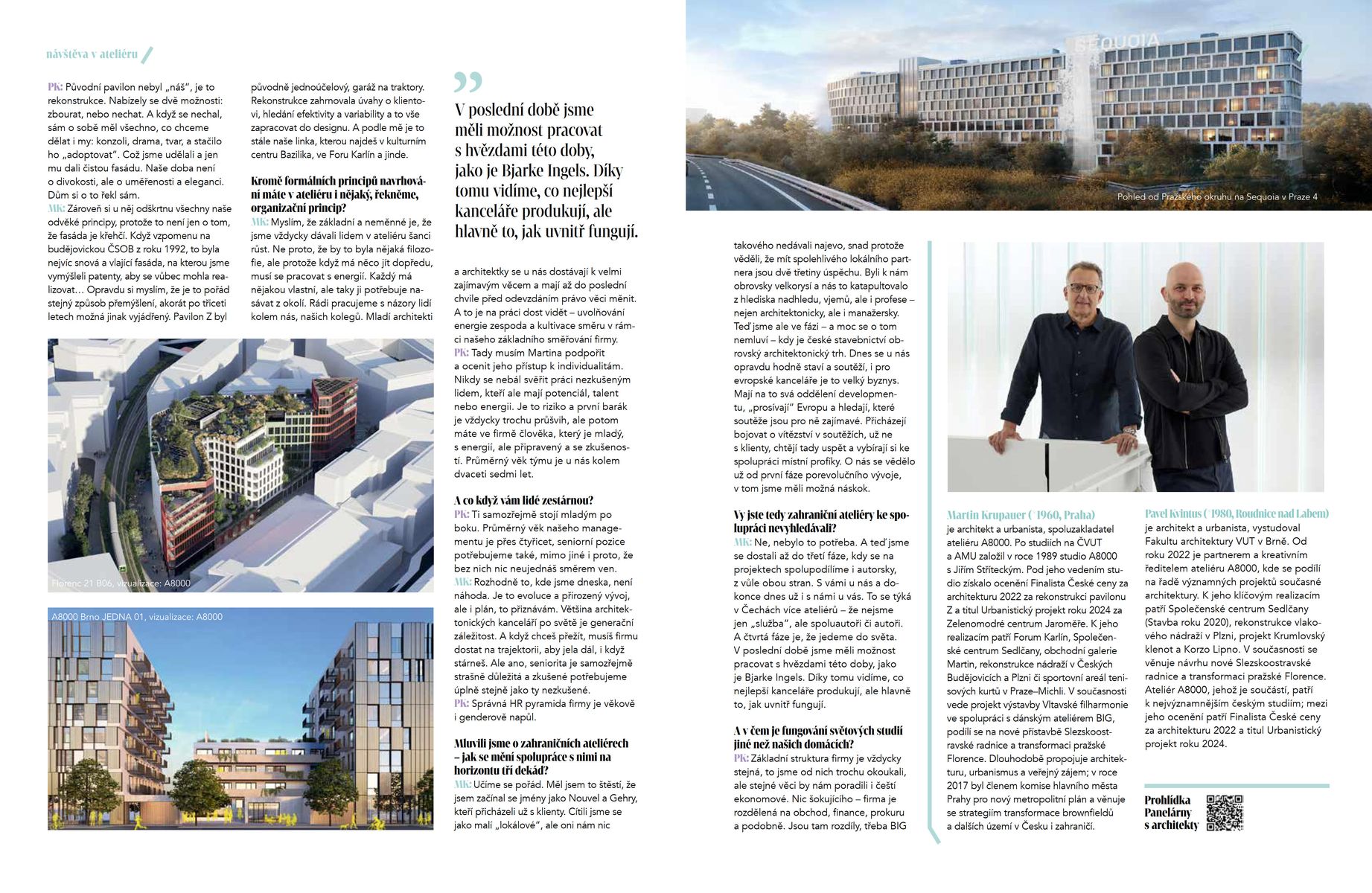Číslo doplňuje nová rubrika, Návštěva ateliéru. Tentokrát jsme navštívili A8000 a nahlédli do způsobu práce jednoho z výrazných českých architektonických studií. V tomto vydání Stavby spojuje příspěvky jedna vlastnost: vědomí vlastní role. Architektura není pouze kulisou městského života – stává se aktivním nástrojem, který jej spoluutváří.