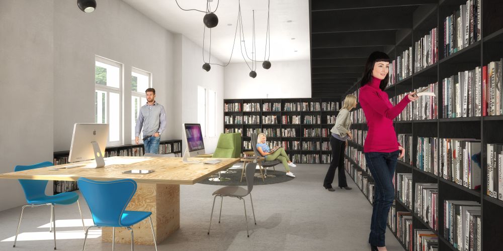 vyčlenili pro provoz knihovny – na stávající vstupní prostory navazuje