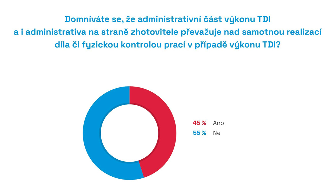Administrativa k TDI bezesporu patří. Často tvoří většinu času věnovaného výkonu TDI. Ke snížení administrativní náročnosti by podle více jak poloviny dotázaných mohlo pomoci společné datové prostředí a využití jiných digitálních nástrojů.