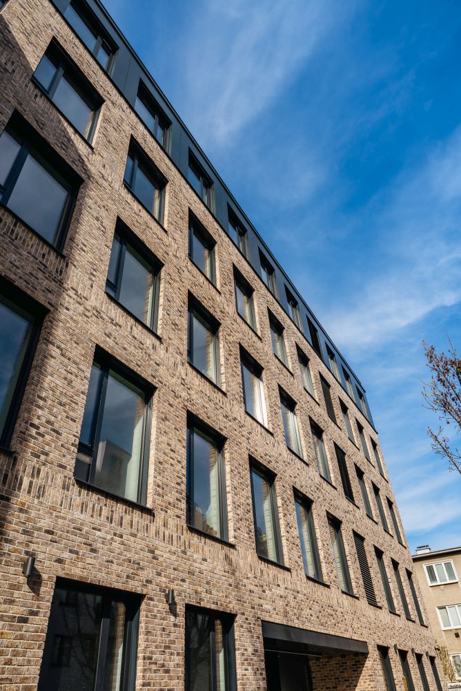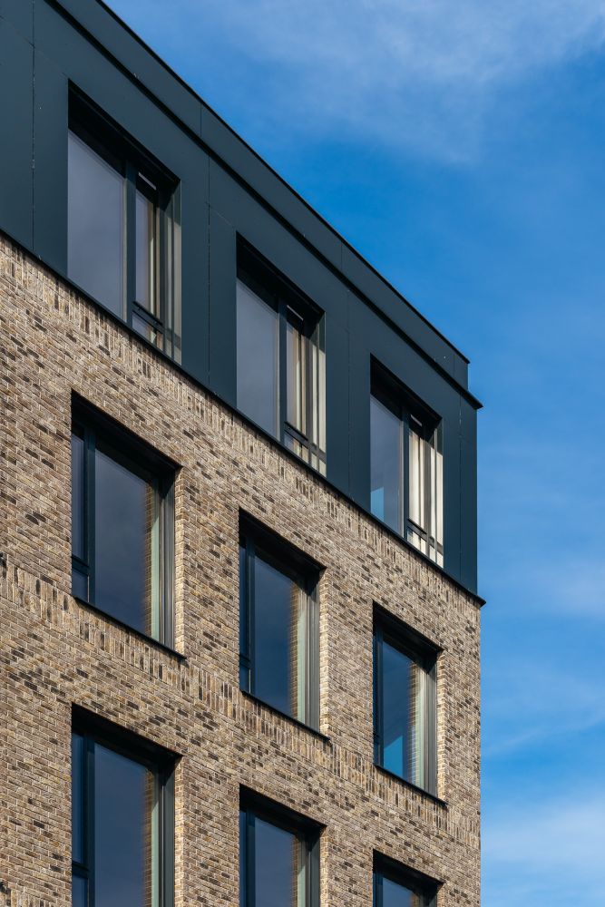 Lokalita patří k nejlepším v Žilině – nachází se v blízkosti městského centra, autobusového nádraží a železniční stanice. Od začátku nám bylo jasné, že novostavba si zaslouží nadstandardní architektonické řešení. Navrhli jsme reprezentativní objekt, jehož výška a objem respektuje měřítko a zástavbu místa. Výraz fasády určuje rastr z béžových lícových cihel a jeden typ okna. Důraz jsme kladli na proporce domu, materiály, barevnost a také na zpracování detailů.