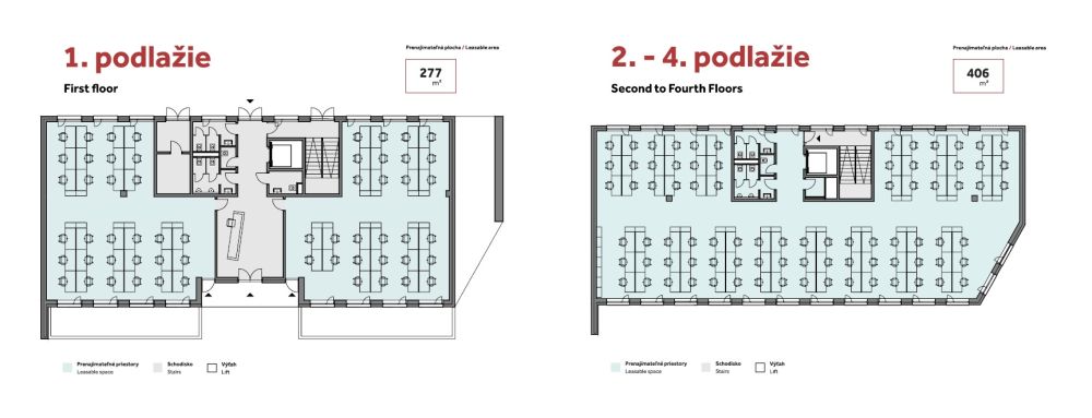 Plocha kanceláří: 1900 m2, 41 parkovacích míst