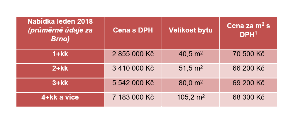 nových brněnských bytů – v roce 2017 zdražily v průměru o 11 %. Žádaná