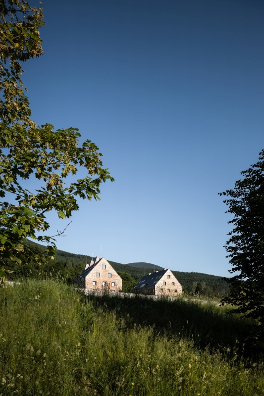 Soudobé, až minimalisticky jednoduché pojetí staveb je volným přepisem tradičního tvarosloví původní architektury Jesenicka. Základní hmotu na obdélníkové stopě půdorysu ukončuje klasická sedlová střecha. Obě stavby jsou kompletně obloženy typickým materiálem místního původu – modřínovým šindelem v přírodním provedení.