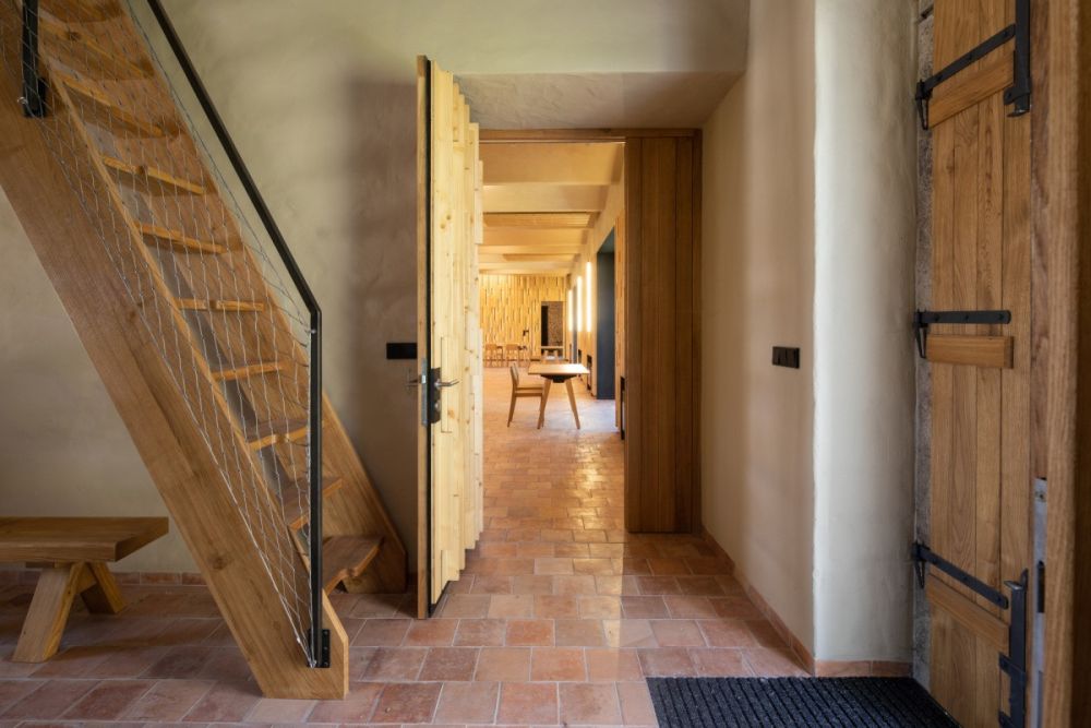 Jednotícím prvkem interiéru je hliněná omítka, keramická dlažba půdovka na