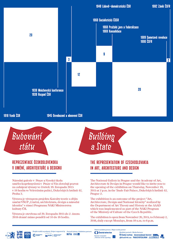 Struktura výstavy odpovídá mimo jiné také individuálním kurátorským pozicím autorského týmu, jenž tvoří pedagogové teorie a dějin umění pražské UMPRUM společně se studenty a dalšími spolupracovníky. Dílem studentů a absolventů UMPRUM je rovněž grafický a výstavní design. Výstava, která je závěrečným výstupem výzkumného projektu „Umění, architektura, design a národní identita“ podpořeného MK ČR v rámci grantového programu NAKI, který v letech 2010–2015 řešila Katedra teorie a dějin umění Vysoké školy uměleckoprůmyslové v Praze pod vedením Jindřicha Vybírala, je zároveň součástí programu, jenž letos připomíná 130 let od založení školy. K výstavě vychází rozsáhlá doprovodná publikace v češtině a angličtině, která obsahuje navíc i umělecká díla a architektonické realizace ze Slovenska, které nebylo možné vystavit. K výstavě je připraven bohatý rejstřík doprovodných programů ve spolupráci s dalšími institucemi jakou jsou NFA či Ústav pro studium totalitních režimů – jeho přehled je k dispozici na www.ngprague.cz.
