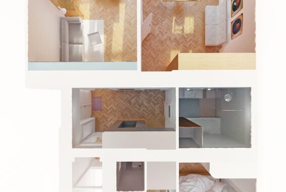 Na začátku spolupráce byly prověřeny různé možnosti dispozičních změn a výraznějších přestaveb. Architekti společně s investory definovali základní požadavky rekonstrukce a došli k tomu, že potřebám bude nejvíce odpovídat původní rozvržení bytu. Návrh se tak odehrává v jemnějších změnách v rámci dispozice a zaměřuje se více na design samotného interiéru s promyšlenými detaily. Zařízení vytváří jednoznačně čitelnou, novou vrstvu, která tvoří dialog s historií bytu. Působivost celého prostoru posouvá umělecká sbírka majitelů na estetický zážitek.