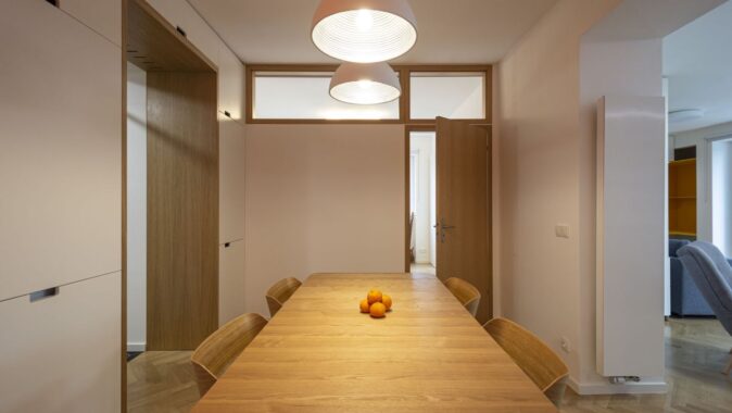 Výsledkem těchto vstupních analýz bylo vytvoření konceptu bytu „s nikami“. Byt s nikami reflektuje potřebu mít vždy své místo v prostoru, niku, která se objevuje na několika místech v bytě a vyjadřuje jakýsi akcent a to i kontrastní materiálový. Zde se něco děje, zde dělám to a to. V návrhu jsme k bytové jednotce přistupovali neinvazivně a respektovali jsme všechny nosné stěny v jednotce. Úprava se týkala jen nenosných příček.