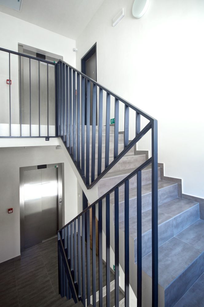 kočárků. Na každém podlaží jsou dva byty kategorie 1+kk, orientované kolmo k