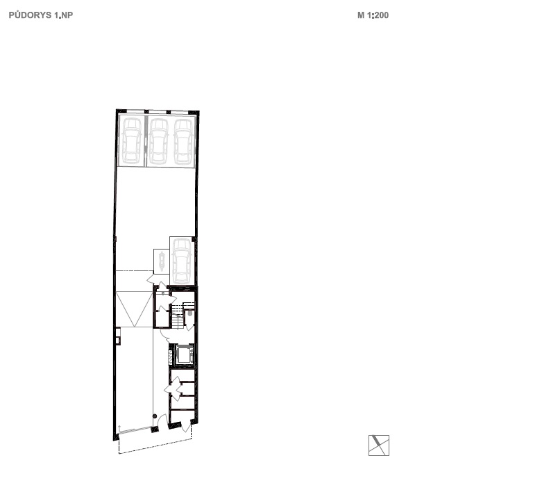 pásem prosvětlené schodiště. V přízemí je umístěna krytá garáž, na jejíž střeše