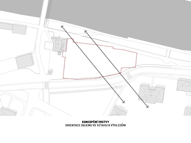 Řešené území leží přesně na jejich pomyslné spojnici s historickým centrem. Z velkého