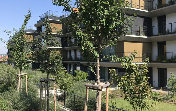 Projekt směrem na jih zahrnuje také nový soukromý park, ve kterém se mj. nachází venkovní posilovna, herní prvky pro děti, pergola či místo na grilování. Zahradní architektura celého projektu byla zpracována atelierem Flera pod vedením Ferdinanda Lefflera a Jiřího Stiborka.