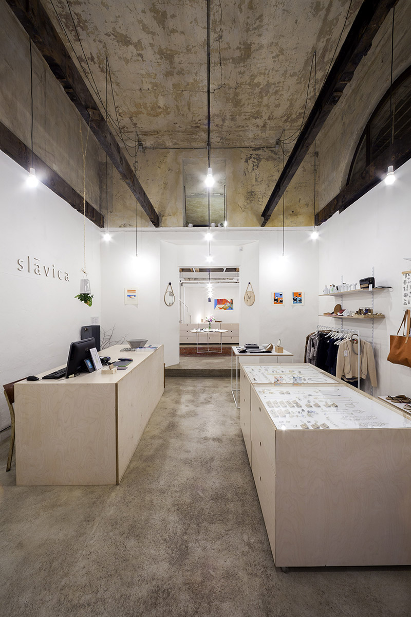 riešenie interiéru obchodu Slávica v Bratislave. Obchod s autorským