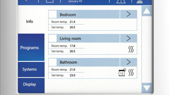 Požadovanou pokojovou teplotu lze nastavit přímo na termostatu, nebo – pokud je CCU připojena na internet, tak i přes aplikaci pomocí PC nebo mobilního telefonu. Sledování teplot uvnitř i venku je důležité pro zajištění co nejefektivnějšího řízení systému a snížení spotřeby energie.
