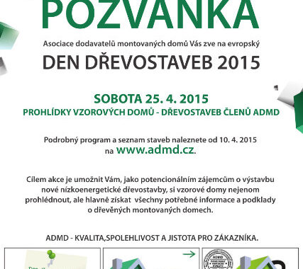 V sobotu 25. dubna se od 10 hodin v rámci akce Den dřevostaveb otevře v celé České republice kolem 30 vzorových a referenčních domů, členů Asociace dodavatelů montovaných domů (ADMD). Den otevřených dveří tuzemských dřevostaveb se tak stane pro širokou veřejnost vhodnou příležitostí seznámit se s kvalitními a moderními nízkoenergetickými domy na bázi dřeva, s jejich konstrukcí, vlastnostmi a se samotnou technologií výstavby.