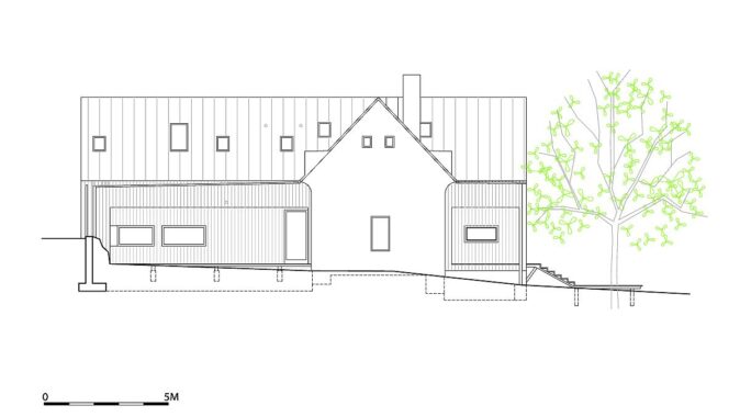 křížového půdorysu. Jsou to v podstatě domy dva. Nový drží tvar vesnického domu a prochází skrz střed