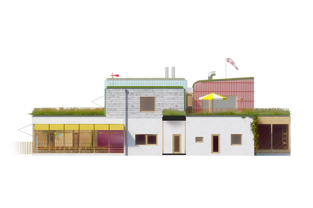 – Drobné měřítko – hravá silueta (genius loci vnitrobloku) – klubovna – ztotožnění se s domem