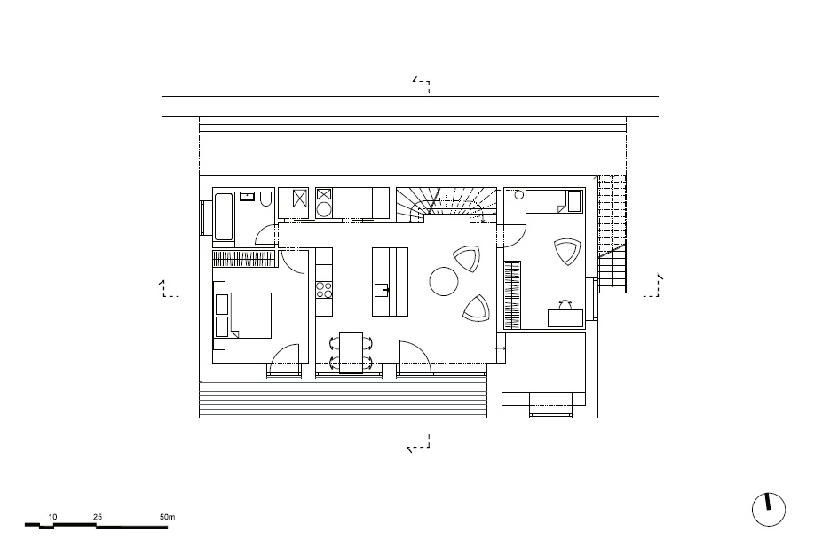 plochy umístěna ve spodním podlaží v přímém kontaktu s terasou a zelení. Terasa