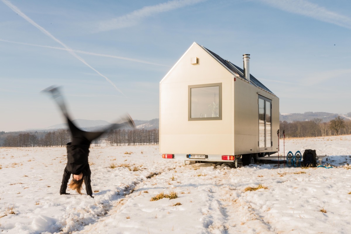 První generace se testovala po celé České republice bez připojení na inženýrské sítě, dům na kolech se vypořádal s letními vedry i sněžnými bouřemi na horách. Nejen architekti ale na vlastní kůži vyzkoušeli všechny klimatické podmínky, najeli tisíce kilometrů a spoustu z nich i po nezpevněných cestách offroadem. Právě díky testování mezi lidmi získali potřebnou zpětnou vazbu, ze které vzešla komfortnější verze, která je nyní vhodná i k trvalému bydlení. „Během víkendu jsme chatku využili pro romantický pobyt, ale i jako základnu pro výlety na kolech nebo domácí kancelář. V Mobile Hut máte vše, co potřebujete. Měkké spaní až pro čtyři lidi, plně vybavenou kuchyň a koupelnu, teplou vodu, topení a zásobní vodní nádrž, která vydrží pro dva lidi klidně i 3 týdny. Překvapilo nás, kolik je v domku úložného prostoru. Rozhodně jsme neměli problém vejít se do interiéru i s našim sportovním vybavením,“ říká Michal, jeden z návštěvníků, kteří Mobile Hut testovali.