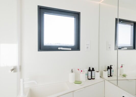 „V novém Mobile Hut najdete větší okna pro více světla a ještě těsnější propojení s přírodou. Hliníková okna Schüco jsou výklopná ven a tak nezaberou v interiéru ani kousek místa. Velkým výklopným střešním oknem nad horním dvojlůžkem můžete pozorovat hvězdy a zároveň rychle vyvětrat. Ve výbavě nechybí síť proti hmyzu nebo screenová zatemňovací roleta,” popisuje architekt Jan Gabriel. Do vodotěsného pláště z eloxovaného hliníku nešlo osadit nic jiného než hliníková okna a dveře, proto architekti od začátku vsadili na Schüco. „Měnili jsme dispozice kuchyně, což nám umožnilo zvětšit okno a protáhnout ho až k pracovní desce, a i ostatní skleněné tabule nad sezením v dolní části či v koupelně jsou větší,“ pokračuje architekt Jan Gabriel.