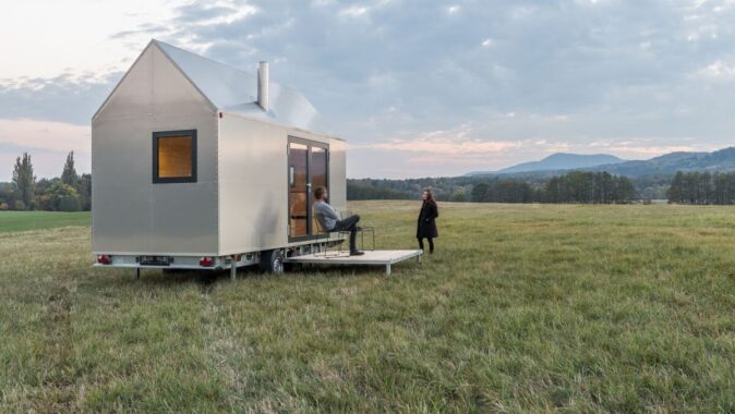 Mobile Hut je nezávislý a energeticky soběstačný domek v hliníkovém provedení. I v druhé generaci byl schválen jako přípojné vozidlo, takže při návrhu se musela splnit přísná kritéria na váhu i rozměry. Legislativně se sice chová jako karavan, ale už od prvního pohledu by se nemohl lišit více. Mobile Hut má tvar klasického domečku, který respektuje archetyp českého domu se sedlovou střechou a zároveň je moderní, minimalistický a čistý. „Na podobu Mobile Hut máme pozitivní ohlasy. Plechový dům je v kontrastu s přírodou, která se v něm ale zrcadlí. Materiál mění barvu podle slunce a stínu. Díky tomu zapadá do okolí,“ představuje druhou generaci Mobile Hut architekt Jan Gabriel.