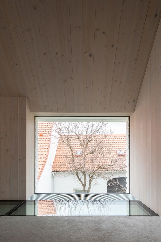 Základní tvar, měřítko a materialitu původních hmot respektujeme. Vnitřní členění jsme přizpůsobili snaze dům zpřístupnit ze dvou stran – pro pěší od náměstí a pro přijíždějící ze strany protilehlé. Velké okno ve štítové dvorní fasádě je odpovědí na jedinečný výhled na kostelní věž. Průhledy z interiéru do dvorků obohacují celkové vnímání prostoru.