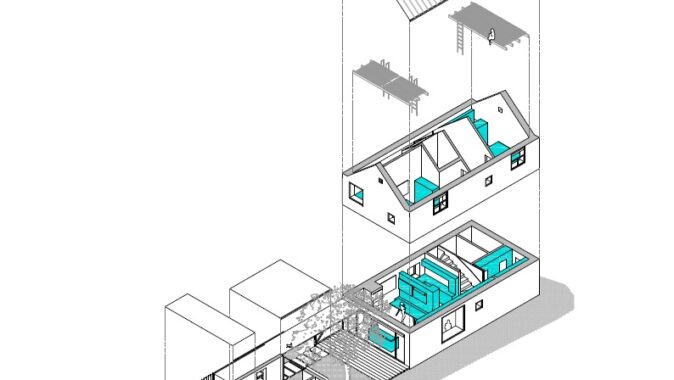 Domov pro mladý pár a jejich dvě malé slečny vznikl v jedné z okrajových částí Prahy, kde se rodinné domy prolínají s výškovou bytovou výstavbou a hustou zelení. V této rozmanité skladbě jsme na velmi úzké parcele navrhli stavbu, která s místem komunikuje a využívá jeho klady. Celek je rozdělen na dvě hmoty, rodinný dům a malou pracovnu přes dvůr.