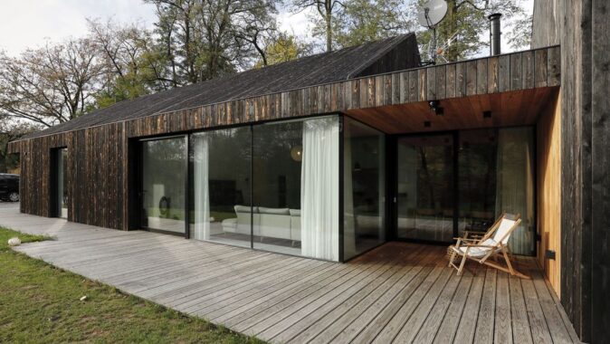 Při navrhování jsme mysleli na japonskou filozofii Wabi-sabi, kráse v nedokonalosti. Počítáme s tím, že černá fasáda časem dostane patinu, oprší, dřevěné terasy zestříbrní, doroste tráva a luční kytky. A vše se nádherně propojí a splyne do jednoho organického celku, dům i místo…