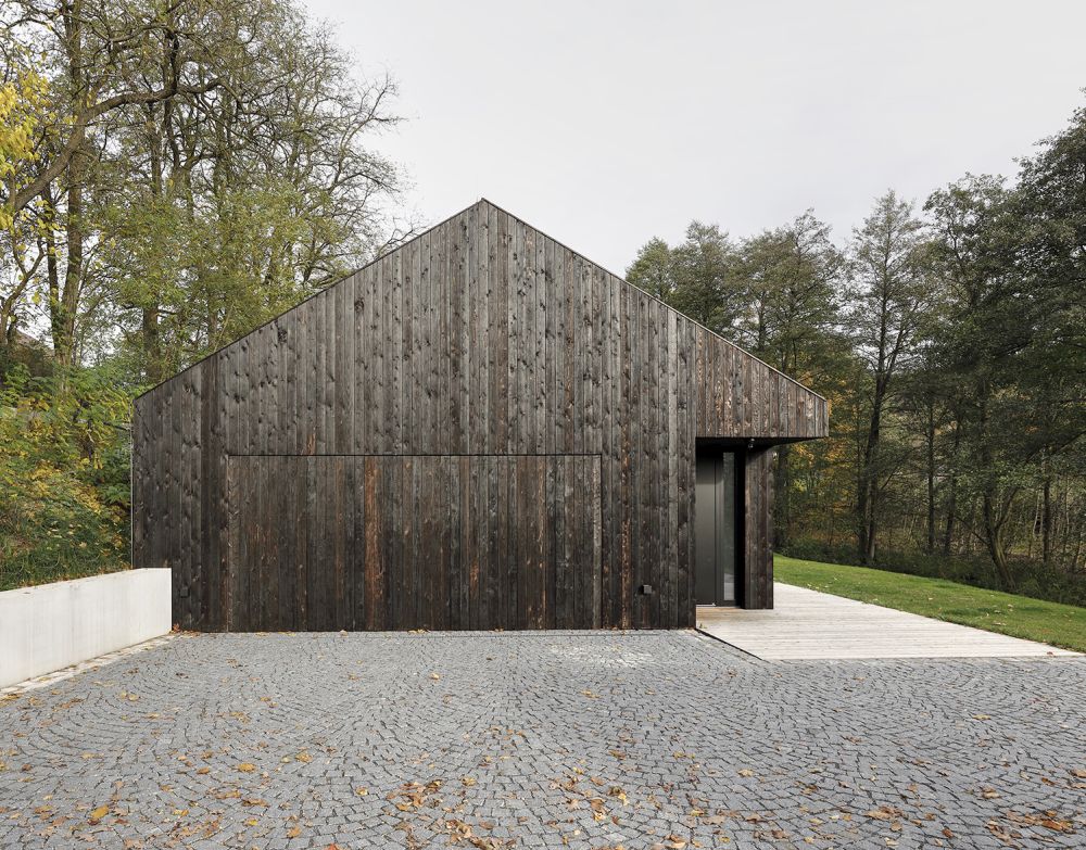 Konstrukčně se jedná o dřevostavbu, skeletový systém s instalační předstěnou. Fasády včetně šikmé střechy jsou provedeny starou japonskou technikou, obaleny jsou ručně hloubkově opalovanými modřínovými prkny. Abychom podtrhli minimalistický výraz domu, navrhli jsme skrytý zaatikový žlab.