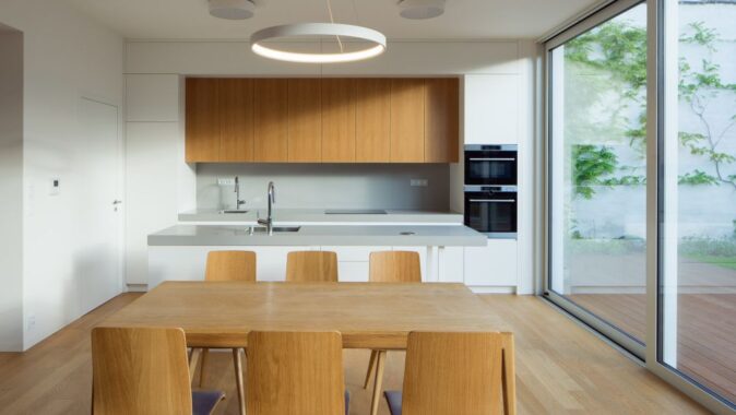 odstoupené k severní hraně domu poskytuje dostatek světla a slunce po celý rok,