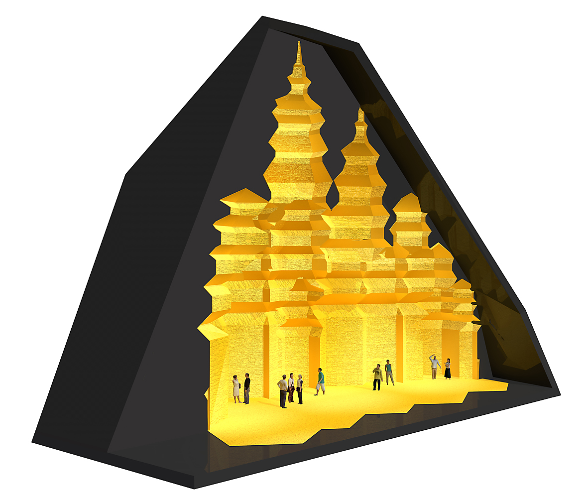 navrhovaných dutých kamenů byl vtisknutý odkaz na příběh té určité hory. Každá hora by měla být „zbarvena do mentálních barev“