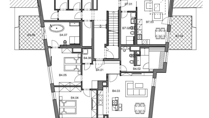 V každém domě je většinou jen jeden byt na podlaží s výjimkou 2. PP, kde je
