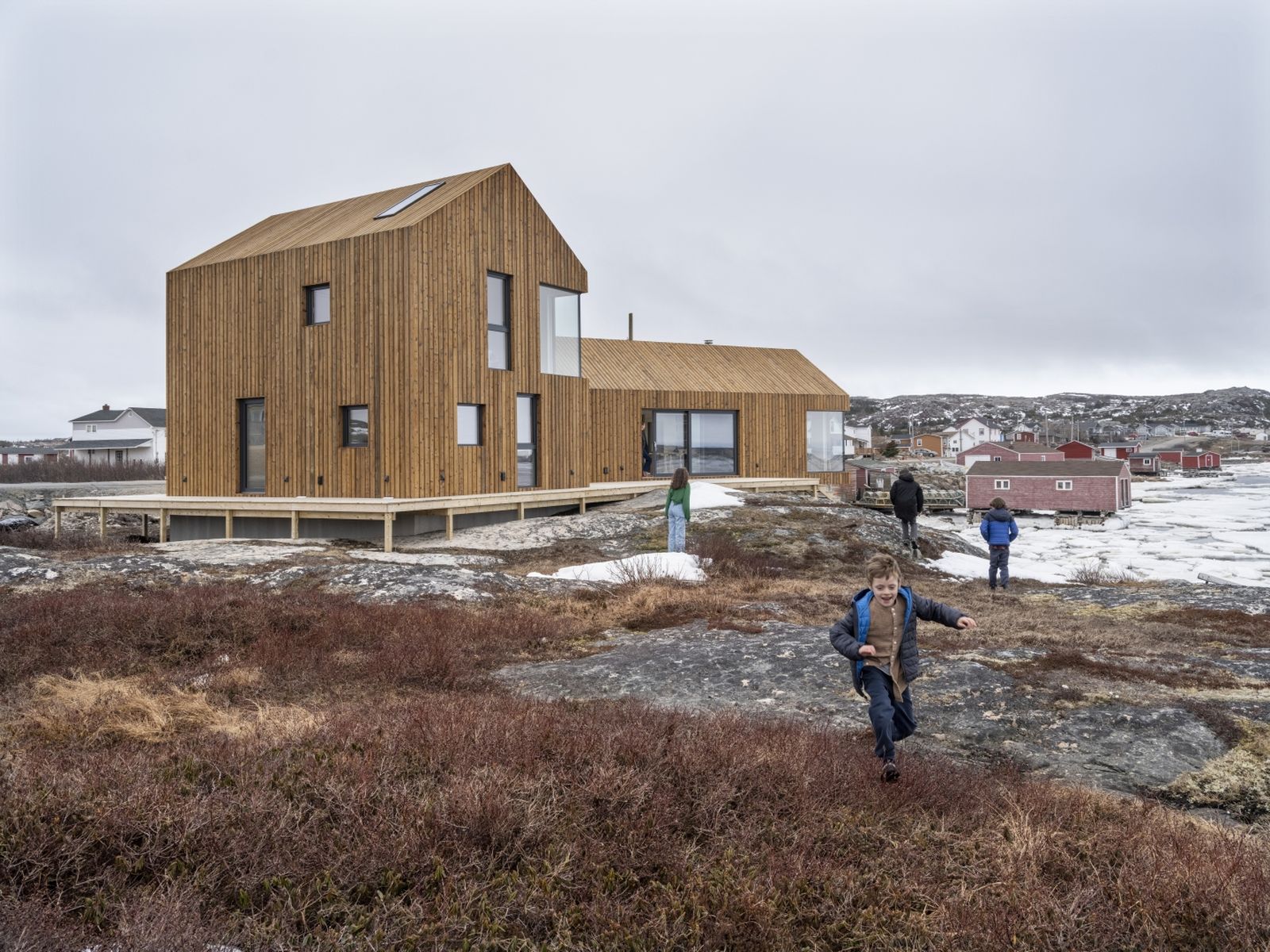 Novostavba ve vesnici Joe Batt’s Arm, navržená a postavená architektem Kingmanem Brewsterem, je nápadně moderní. Brewster pochází z New Yorku a před více než deseti lety se s rodinou přestěhoval z Brooklynu (NY) na Fogo Island. Přestože tam původně přijeli jen na pár měsíců, zůstali natrvalo. Kingman Brewster od té doby s respektem propojuje svůj smysl pro moderní design a pohodlí s místní původní architekturou, čehož důkazem je i jeho dům: Budova stojí zčásti na kůlech, takže se lehce vznáší nad skalnatou krajinou. Na jedné straně jsou tyto kůly praktické pro stavbu na nerovném terénu, zároveň však vzdávají hold typickým dřevěným domkům, ve kterých rybáři zpracovávají úlovky.