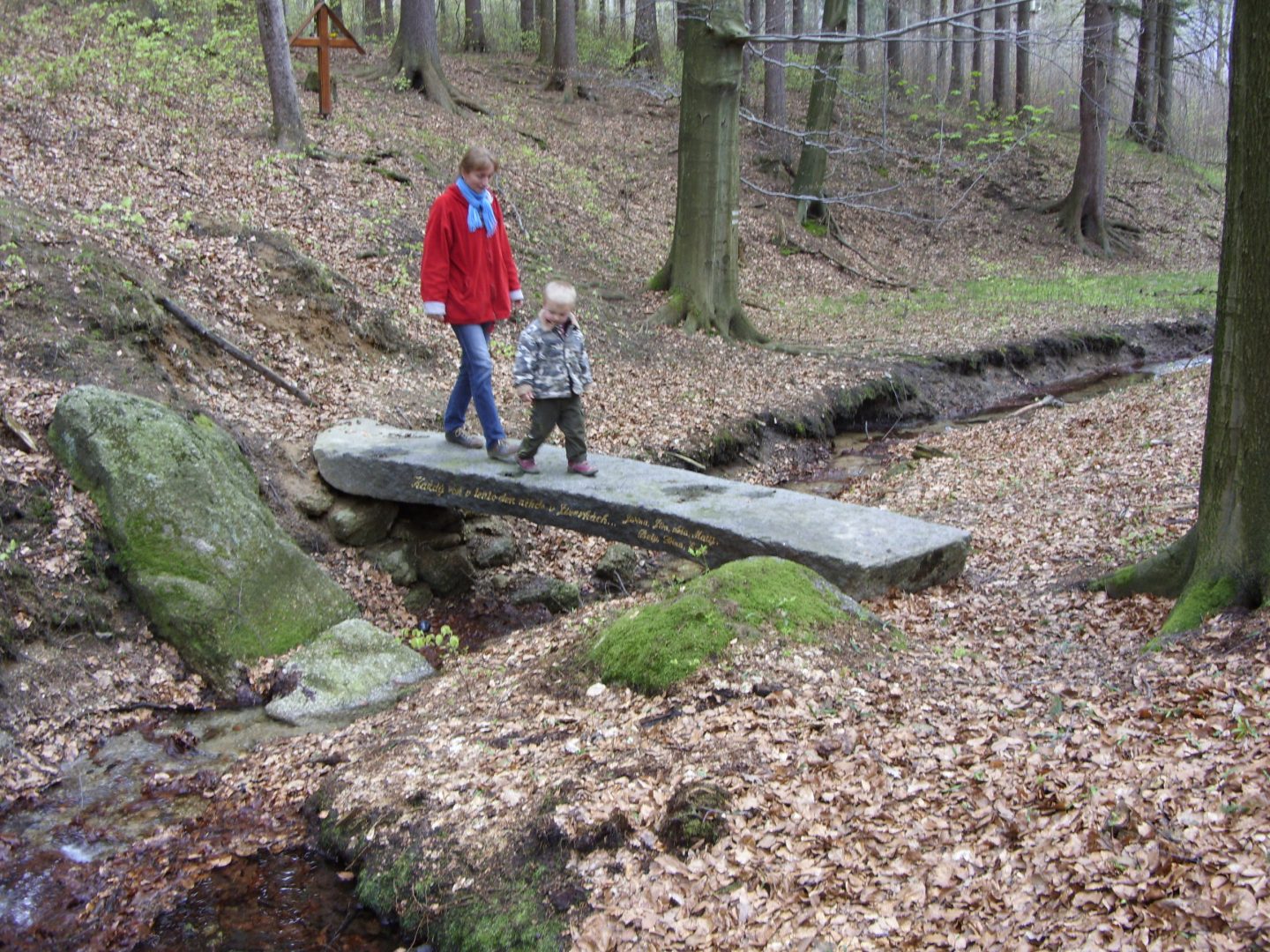 teče malý potok v malebném údolí bukového lesa, napadlo mě vytvořit most. Je to