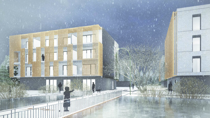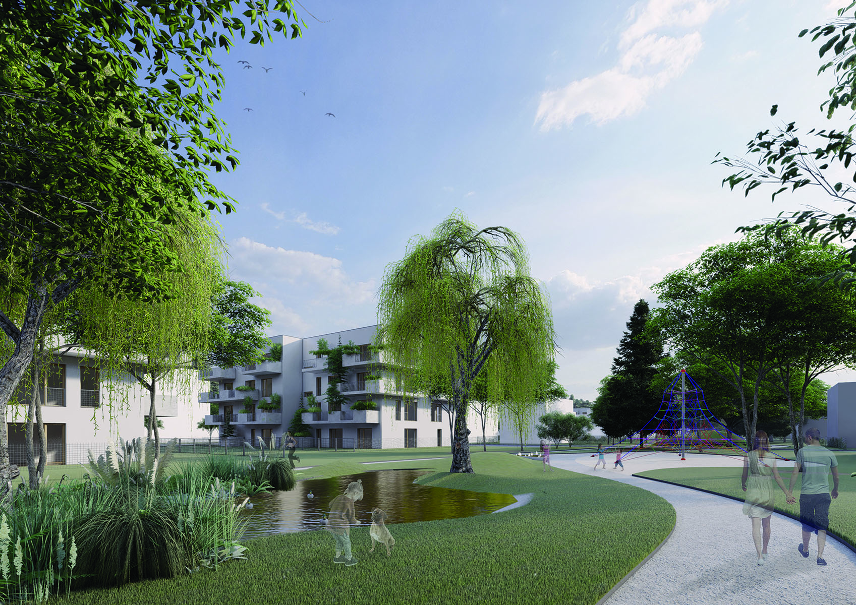 klade důraz na centrální park, který odděluje stávající a budoucí zástavbu.