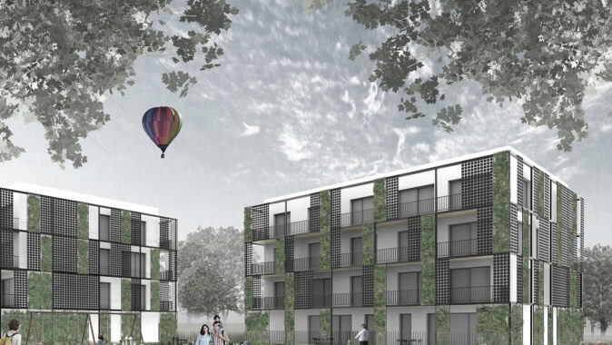 sítí, která předpokládá osazení popínavými rostlinami. Bytové domy tak