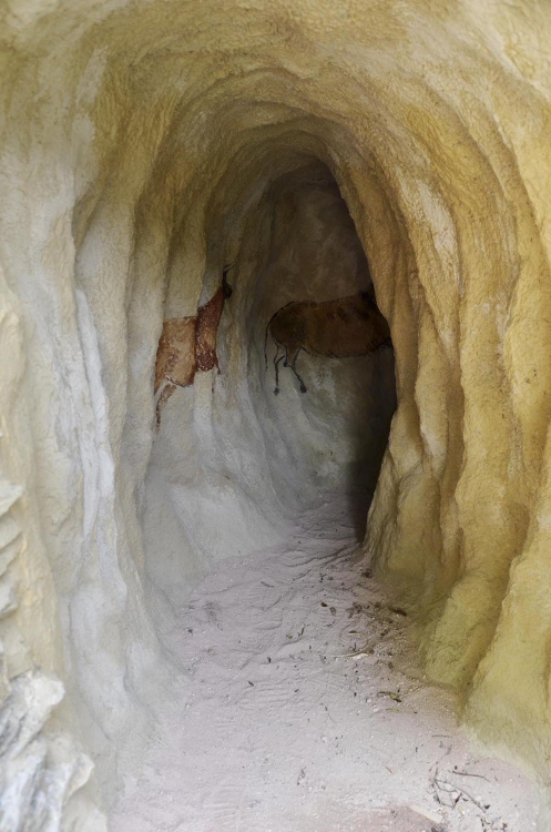 Depozitář vzorků vybudovaný ve druhé etapě navazuje na model jeskynního systému. Ten byl realizován vyzděním nosných opěrných prvků a překlenutím střechy řešené jako betonová skořepina. Interiér jeskynního systému se dále tvaroval za použití polystyrenových desek. Následné tvarování probíhalo za použití několika vrstev vyztuženého sochařského betonu pod dohledem geologa tak, aby odpovídalo geomorfologickým předlohám. V několika místech jsou do betonové imitace vsazeny reálné bloky hornin. Z vnějšku stavbu vymezují opěrné stěny s různým kamenným obkladem – jednak z lokální břidlice, a dále třeba v podobě modelu vrásy z vápence barrandienského souvrství.