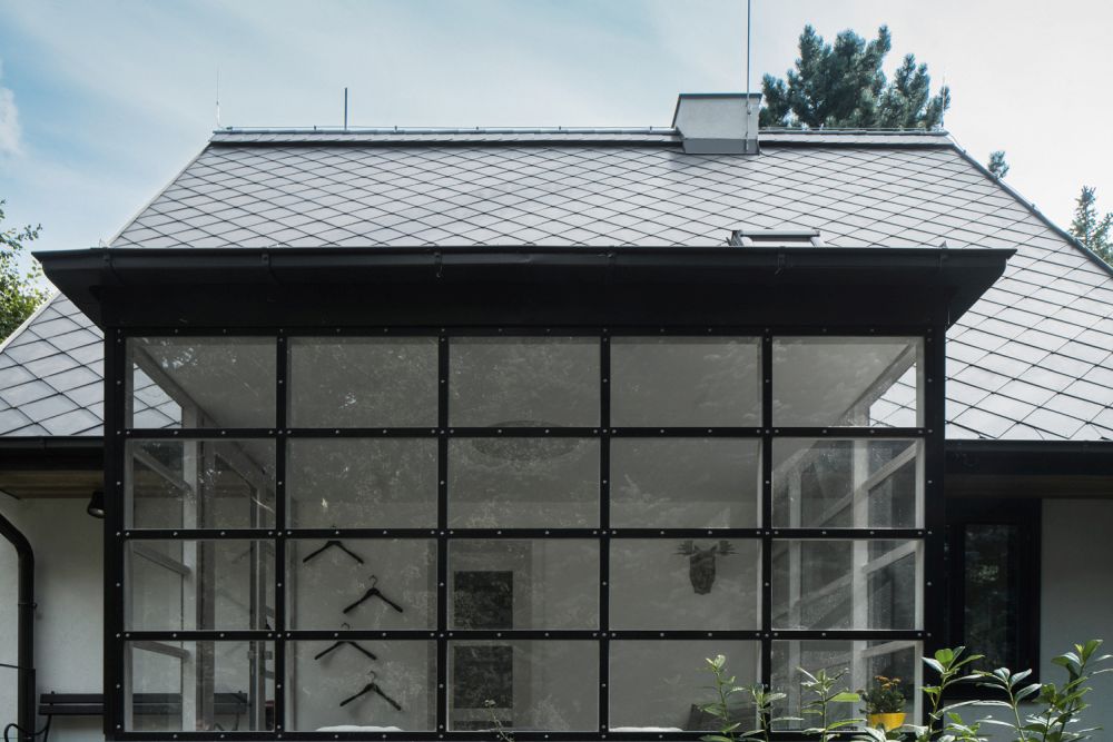 Nejvýraznějším architektonickým prvkem Hájenky je vstupní veranda, jejíž tvar a velikost jsme zachovali a navrhli novou zasklenou konstrukci s příjemnějším členěním a ocelovými zasklívacími lištami.