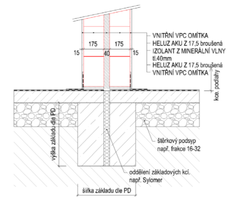 systém. Schéma doporučeného konstrukčního řešení dvojité stěny z HELUZ AKU Z 17,5