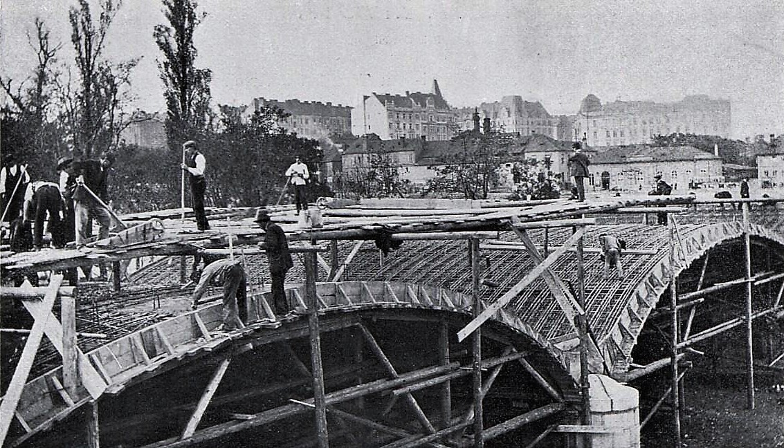 betonový. Hlávkův most byl postavený podle projektu mostního inženýra Františka Mencla a architekta Pavla Janáka v letech 1908–12. V letech 1908 až 1910 byla postavena jeho železná část a v letech 1910 až 1911 železobetonová část.