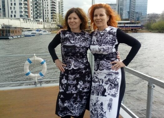 Fasáda je obložena obrazy Barbory Šlapetové, sestry (dvojčete) paní architektky. Obsahuje jejich osobní příběhy, které jsou vystaveny na odiv nejen rodině, ale také kolemjdoucím. Interiér je z větší části rovněž vyzdoben obrazy paní Barbory Šlapetové, ty v sobě pro změnu ukrývají tématiku zážitků a vzpomínek na Papuu-Novou Guineu.