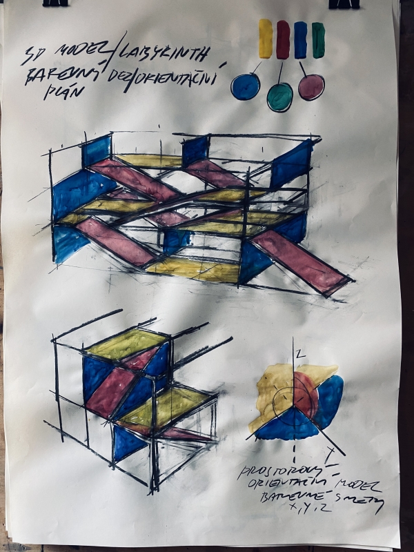 Barevná kompozice díla je navržena s účelem výrazného působení na zrakový smysl. Přímé plné barvy kladené v nepravidelném rytmu, jedna vedle druhé, vibrují, až oči přecházejí. Návštěvník je uváděn do neobvyklé situace, která spouští adaptační proces organismu. Adaptace je klíčový mechanismus, který spojuje hru, učení a vnímání uměleckého díla.