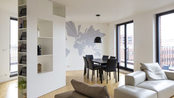 členění, úzké spáry a eliminace klasických nábytkových detailů jako jsou