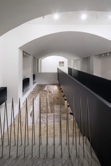 románské základy dají nahlédnout až do hloubky nejstarší zástavby; přemostěny jsou ocelovou lávkou.