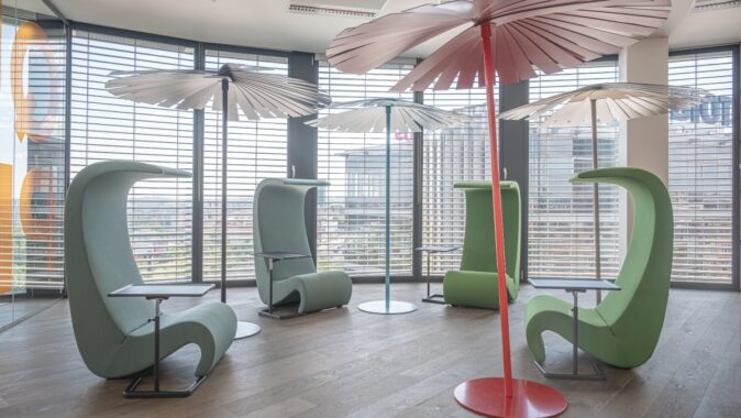 Pracoviště nového typu musí být co nejvíce flexibilní a mít schopnost přizpůsobit se potřebám týmu i jednotlivce. Nové prostory jsou proto rozděleny do několika sekcí podle typu činnosti, kterou se lidé chystají vykonávat. Prostory nabízejí malá tichá místa pro práci, která vyžaduje klid a soustředění, prostornější zóny pro týmové brainstormingy a spolupráci, ale i větší studia pro kooperaci napříč týmy. Je v nich také dostatek prostoru pro odpočinek a neformální chvíle s kolegy.