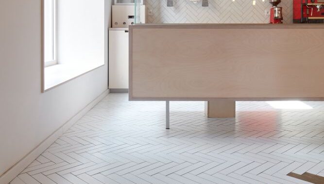 odstínu a skládaných do klasického stromečku a bílých obkladů a dlažby stejného