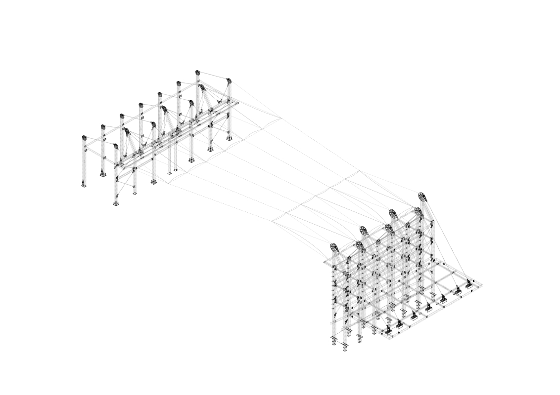 Textilní zastřešení podia a části hlediště zvyšuje komfort účinkujících i diváků, ať už ve slunečném odpoledni nebo deštivém večeru, a pozitivně přispívá k akustickým parametrům areálu. Volné nebe na hlavami diváků zůstalo zachováno nad většinou hlediště. Cílem zvoleného systému zastřešení byla maximální lehkost konstrukce s idejí pouhé „plachty“ napnuté mezi objekty kina. Vzhledem k vysoké míře volnosti konstrukce lan a membrány zavěšené v prostoru byly v průběhu projektu a realizace v nezbytně nutné míře doplněny další nosné prvky. Ocelové konstrukce pro zavěšení lan jsou pojaty nejen jako funkční a technický, ale také jako výrazový prvek.