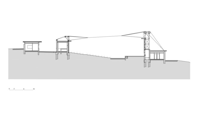 Principy samotných objektů se odvíjejí od sezónního využití a filmových inspirací a asociací. Systémem kotoučů vedoucích film v promítačce návrh volně přepisuje do formy jednoduchých objektů, mezi nimiž kotouče usměrňují namísto filmového pásu lana zastřešení. Plachta zastřešení, subtilní ocelové konstrukce a vlnitý plech vytvářejí dojem lehkých, zdánlivě dočasných, „letních“ objektů.