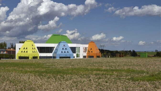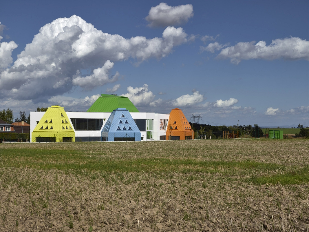 Chtěli jsme vybudovat dětem objekt, který bude neinstitucionální, netradiční, hravý, bude umožňovat rozvoj jejich vnitřní kreativity, bude podporovat všechny krásné specifičnosti dětské duše i mysli, bude umožňovat schovku, detail, světlo, jasné barvy a materiály v jejich přírodní podstatě.