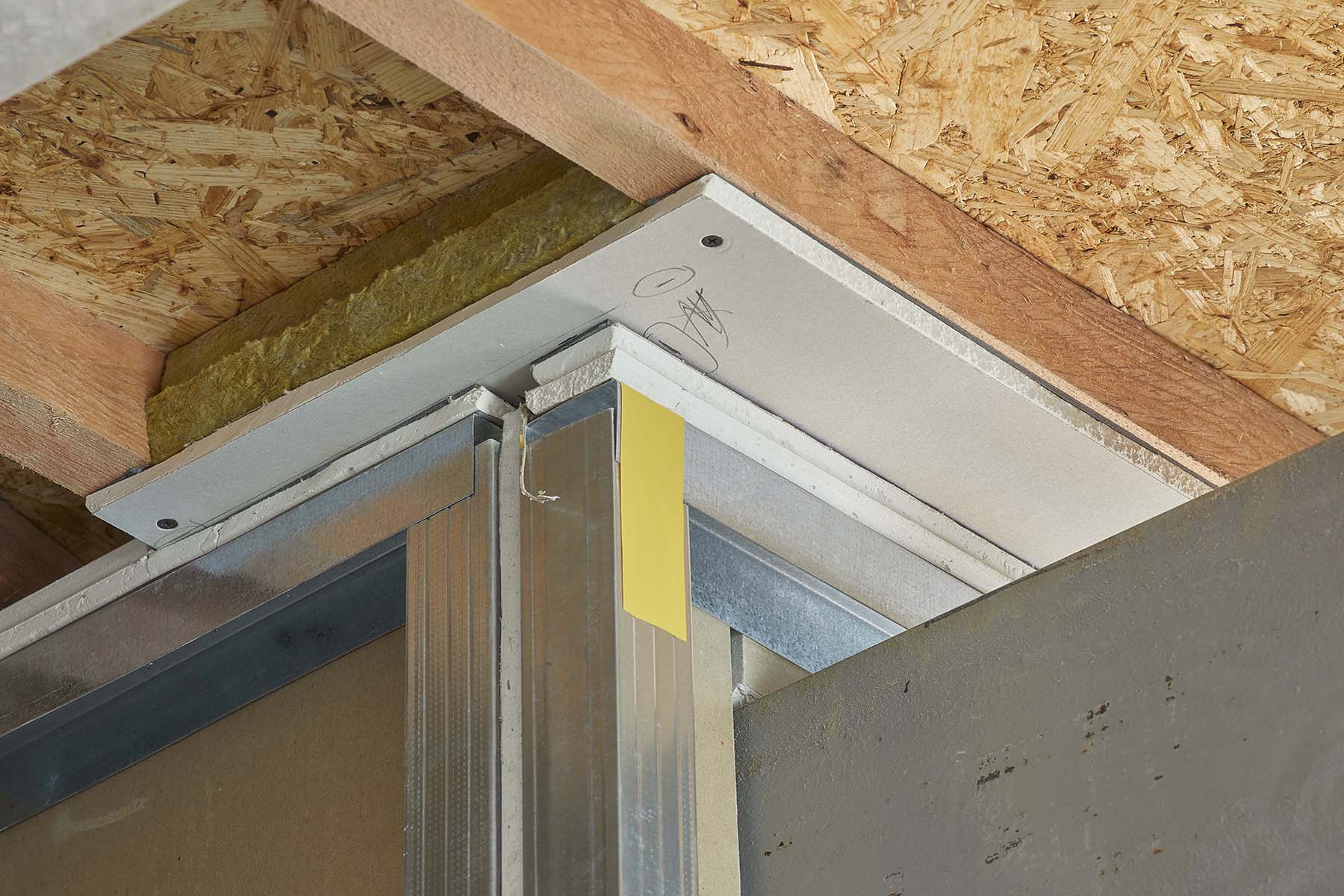 výstavbu mezibytových stěn jsme použili kombinaci Modré akustické desky a